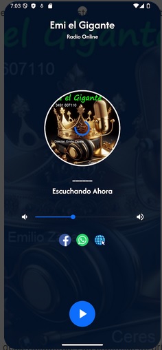 ¡Fm Emi el Gigante!! Somos una radio emisora en Frecuencia Modulada que transmite en el 107.9 mhz. desde la localidad de Ceres, Santa Fe, Argentina y ademas para todo el mundo a través de nuestras diferentes plataformas digitales como: www.fmemielgigante.online y nuestra App en play store: "Radio Emi el Gigante" donde brindamos la mejor música popular y los eventos de Emi que tiene para ofrecer a sus clientes y amigos en todo el territorio nacional de la República Argentina.
